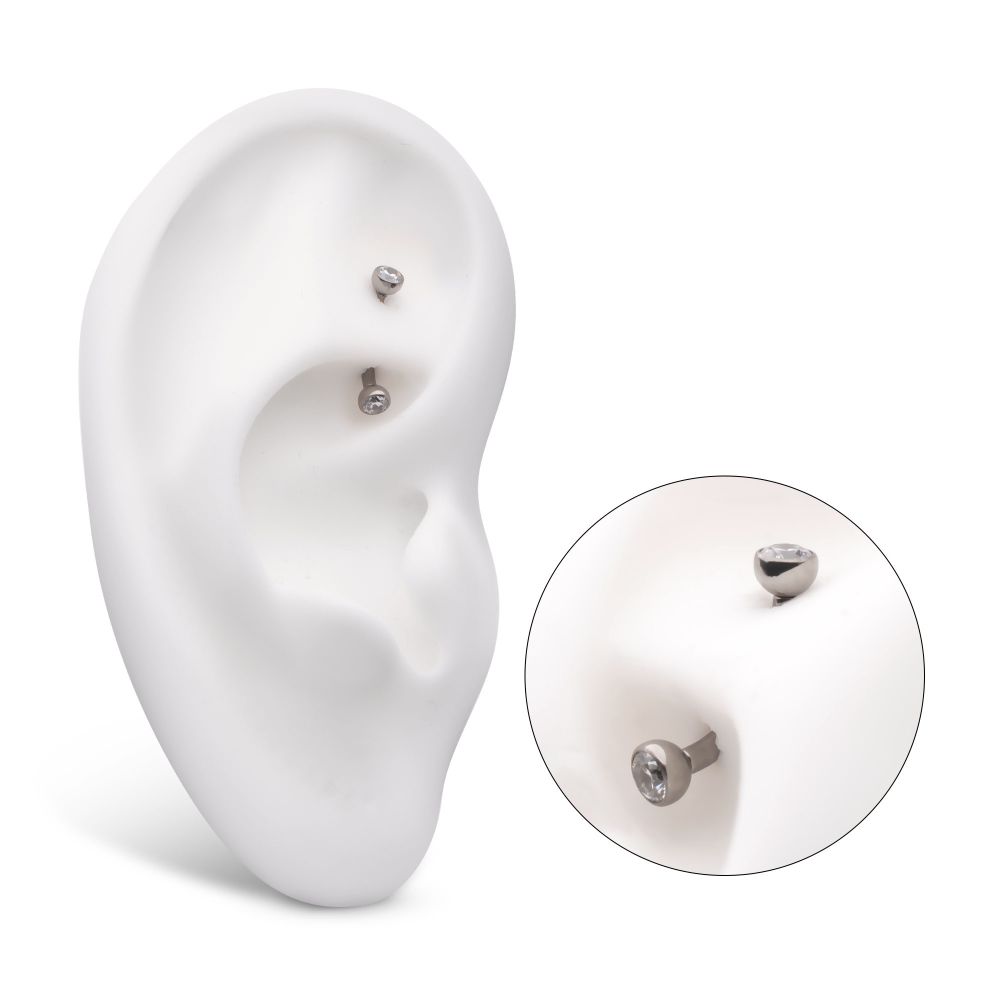 Titanium Internally Threaded Double Bezel Gem End Curved Barbell. Both ends are removable and thread off. Manufactured from High Polish Implant Grade Titanium (Ti-6AL-4V-ELI ASTM F136).