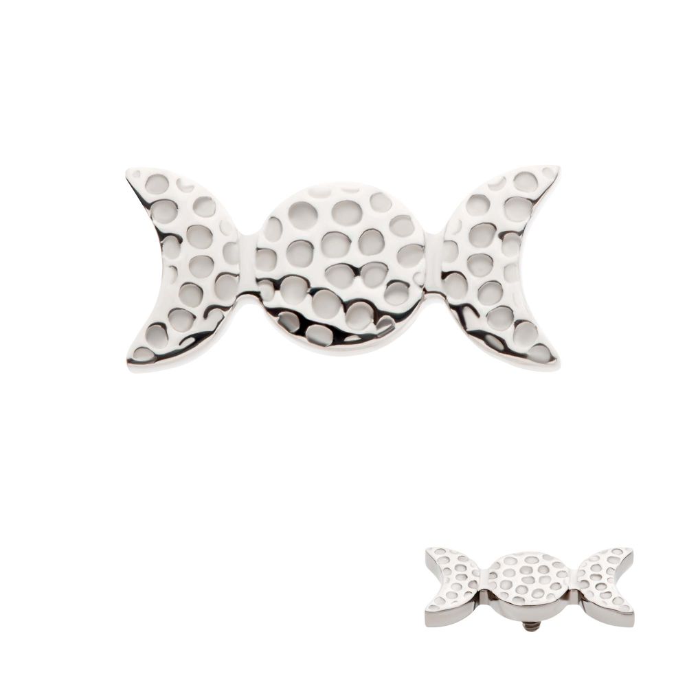 Titanium Internally Threaded Hammered Triple Moon Phase Top. Manufactured from High Polish Implant Grade Titanium (Ti-6AL-4V-ELI ASTM F136).