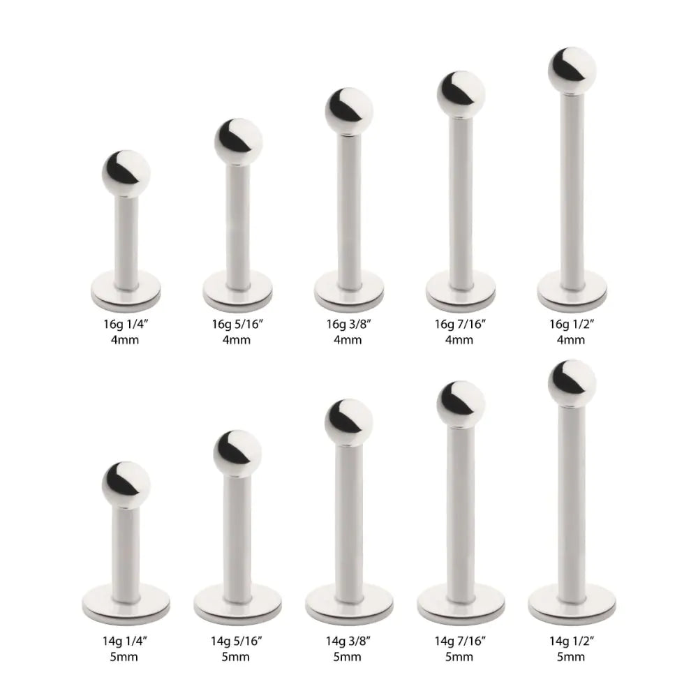 Choose from a variety of gauges and lengths for our titanium, internally threaded labrets - perfect for ears, facial piercings, and anywhere else you can think to use them.
