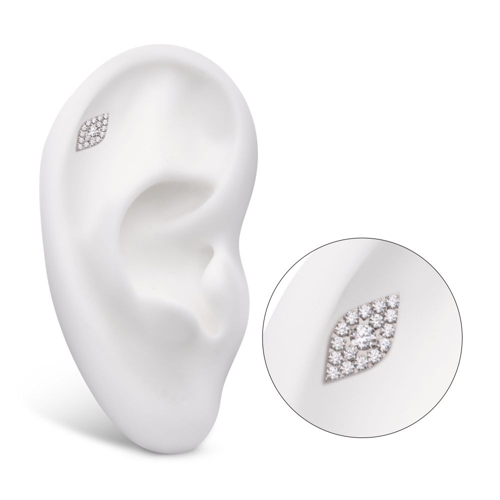 Titanium Internally Threaded Pave Set Full Clear Round CZ Gem Evil Eye Top. Manufactured from High Polish Implant Grade Titanium (Ti-6AL-4V-ELI ASTM F136).