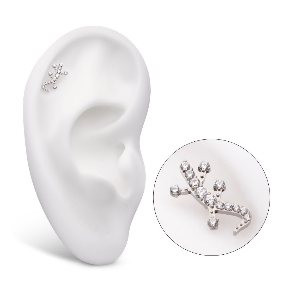 Titanium Internally Threaded Pave Set Round CZ Gem Lizard Top. Manufactured from High Polish Implant Grade Titanium (Ti-6AL-4V-ELI ASTM F136).