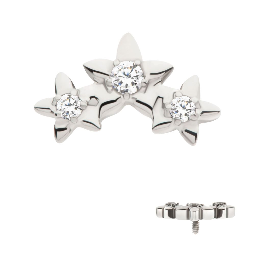 Titanium Internally Threaded Prong Set Round CZ Gem 3-Cluster Star Top