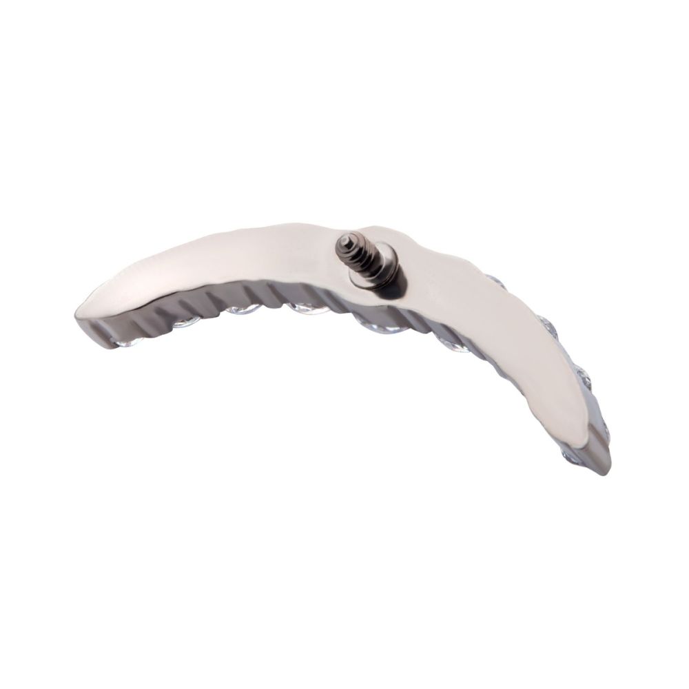 Titanium Internally Threaded Prong Set Round CZ/Opal 9-Cluster Top. This titanium internally threaded rounded cluster has nine cubic zirconia for a luxury look. Fits M0.9 16 gauge industry standard internally threaded jewelry. Manufactured from High Polish Implant Grade Titanium (Ti-6AL-4V-ELI ASTM F136).