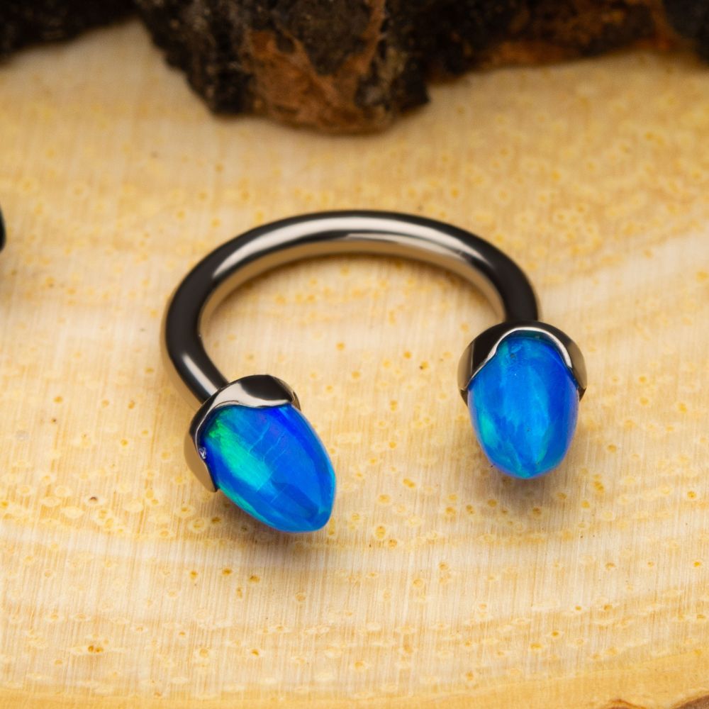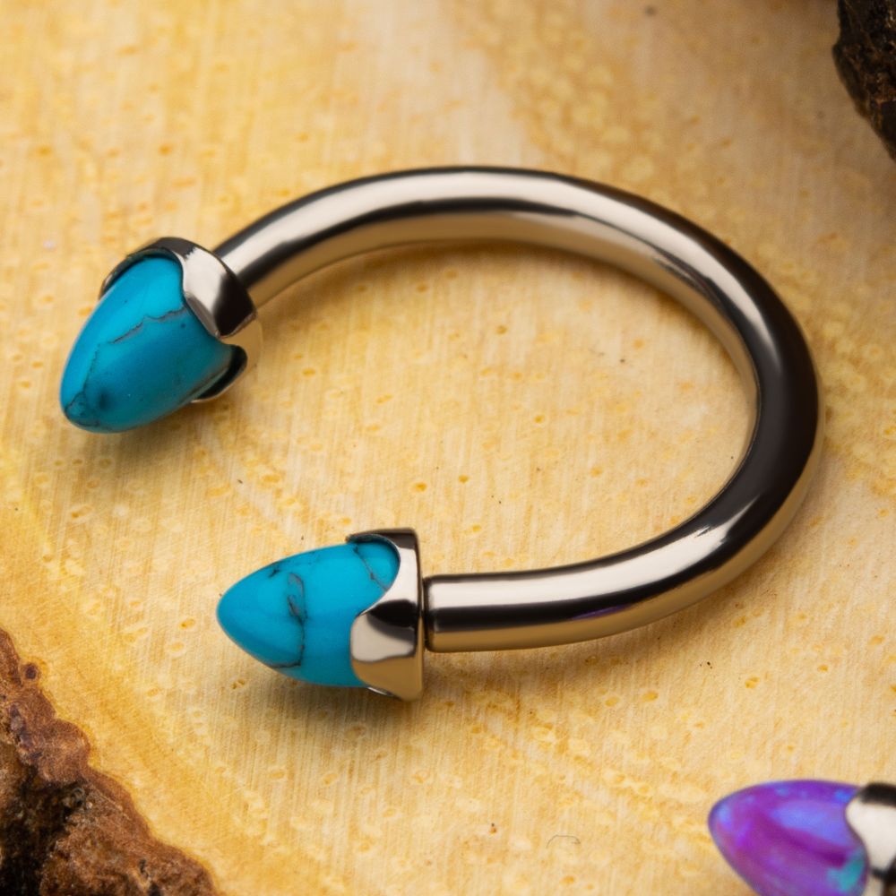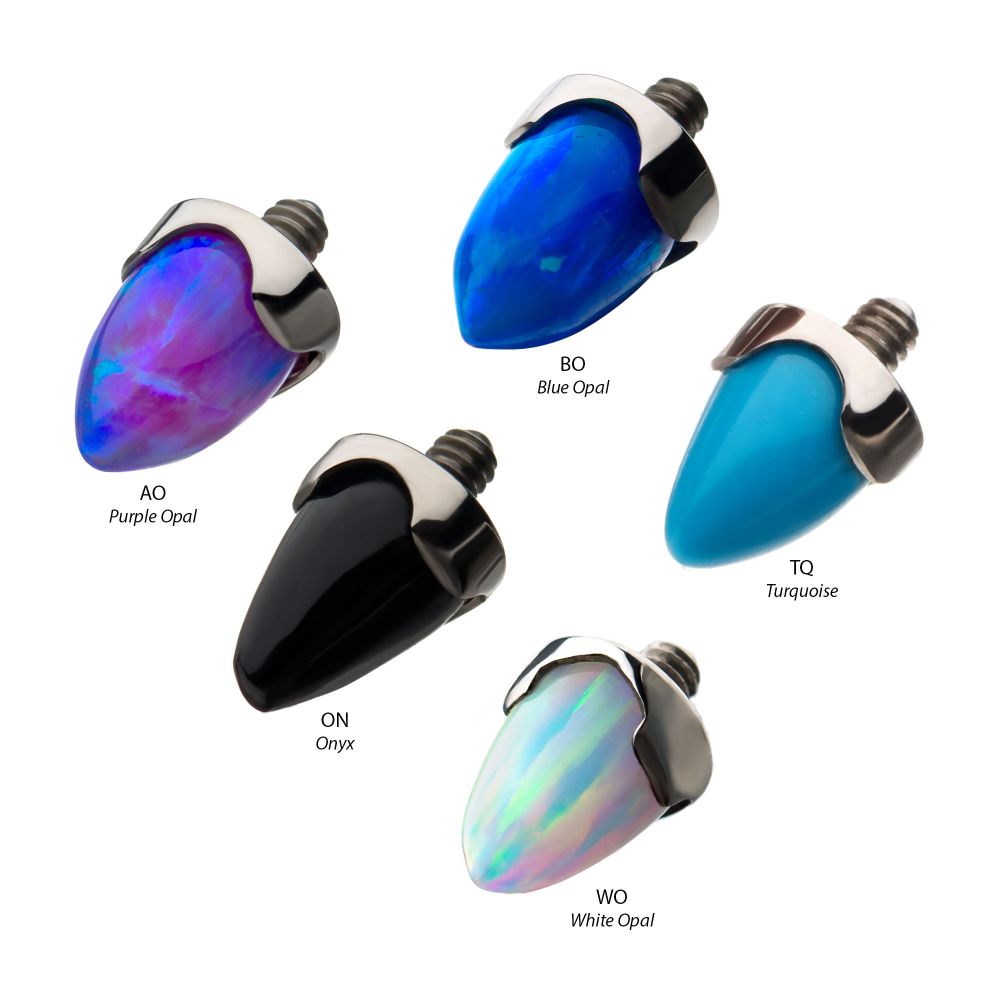 With unique stone colors, our titanium, internally threaded prong set cone spike top is a unique piece that stands out in any piercing. With a color range from white opal to black onyx, there's the perfect match for any client.