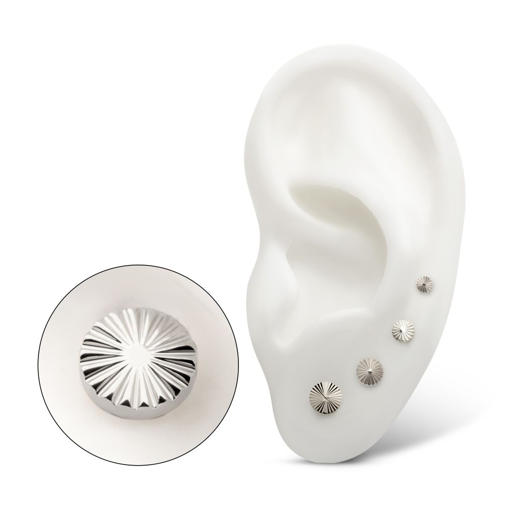 The new Radiant Corrugated Round Tops are designed with a signature corrugated face that amplifies light reflection, delivering high visual impact while maintaining a clean, low-profile form. Perfect for both subtle and statement looks; these tops offer versatile styling across multiple piercing placements.