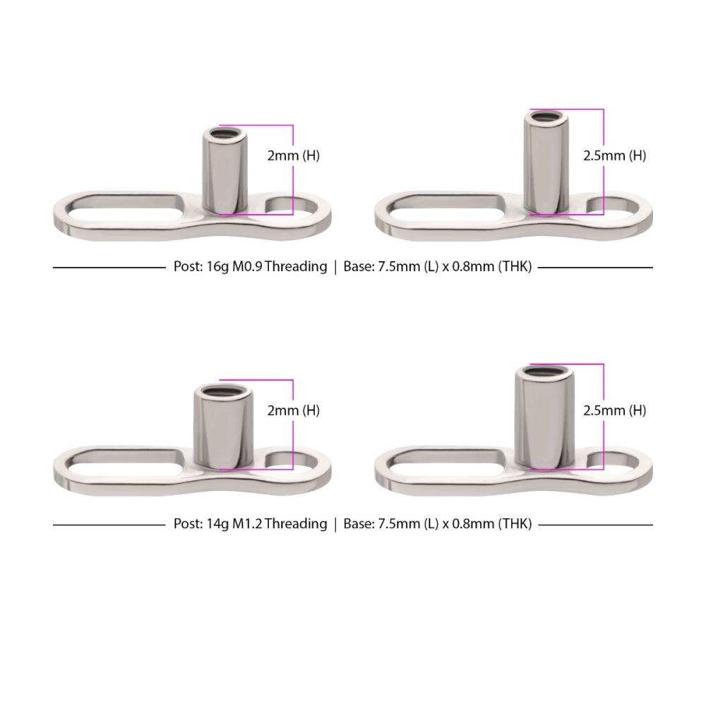Titanium Internally Threaded with 2 Hole Dermal Anchor Base with 14g Threading