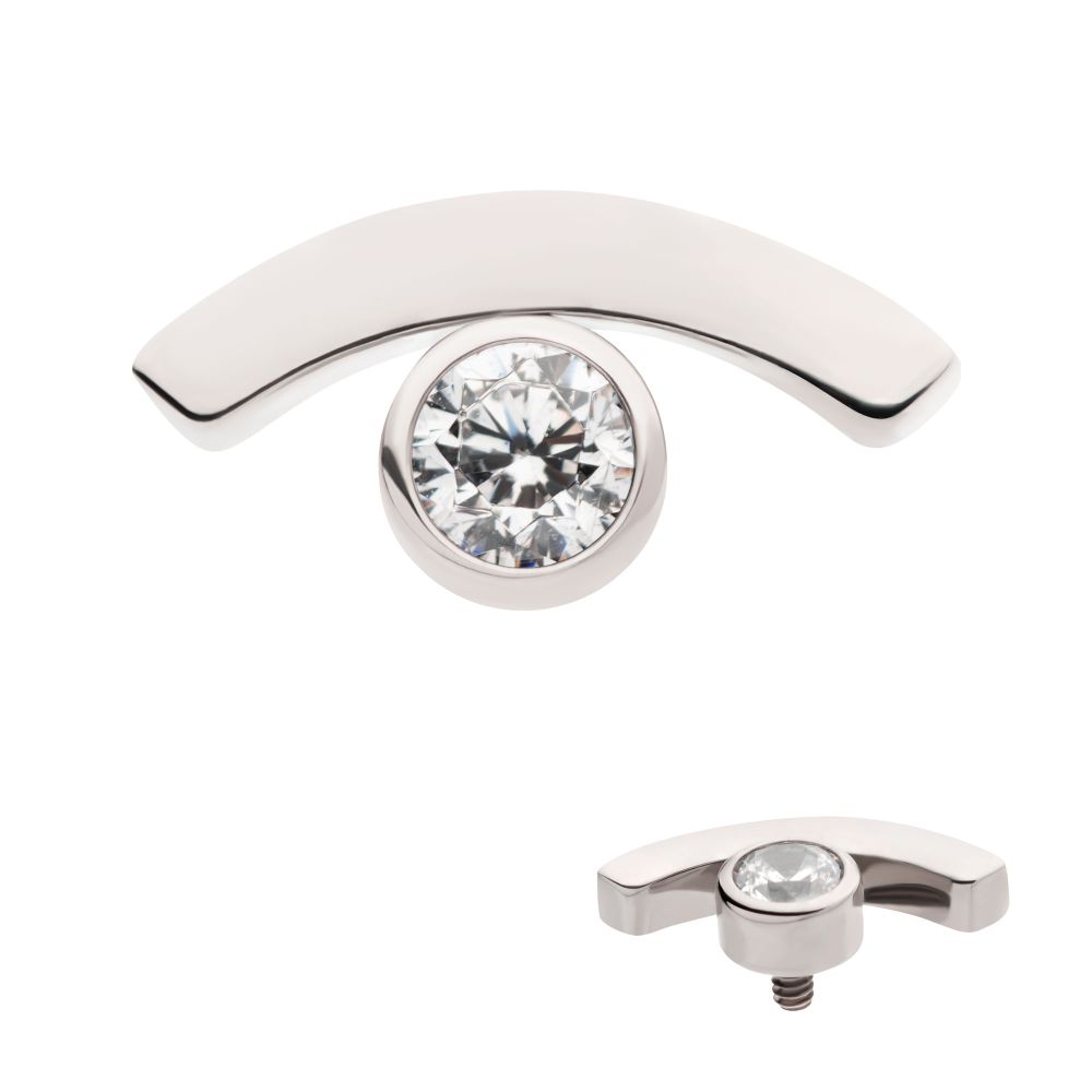 Titanium Internally Threaded with Bezel Set CZ in a Curve Line Top