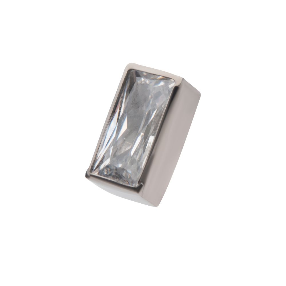 Titanium Internally Threaded with Bezel Set CZ Rectangular Shape Top. M0.9/16g fits Internally Threaded Jewelry. Manufactured from High Polish Implant Grade Titanium (Ti-6AL-4V-ELI ASTM F136). Gem size: 2.5*5mm.