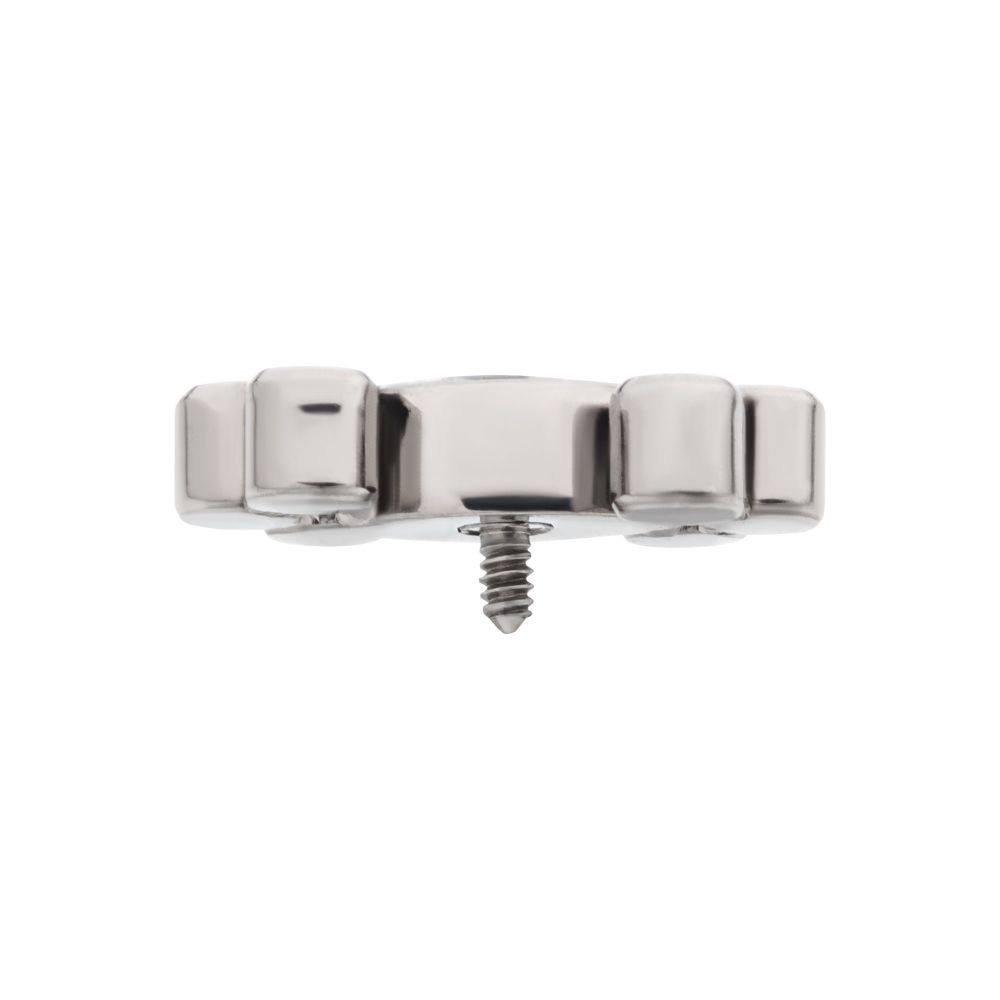 This internally threaded titanium top has a bezel-set marquise-cut cubic zirconia flanked by three round cubic zirconia on each side for a versatile piece of body jewelry. Fits M0.9 16 gauge industry standard internally threaded jewelry. Manufactured from High Polish Implant Grade Titanium (Ti-6AL-4V-ELI ASTM F136).