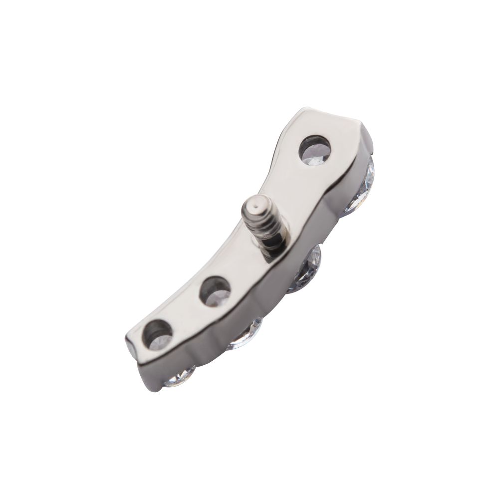 Titanium Internally Threaded with Prong Set CZ Staggered 4-Cluster Top (Right Ear). Manufactured from High Polish Implant Grade Titanium (Ti-6AL-4V-ELI ASTM F136).