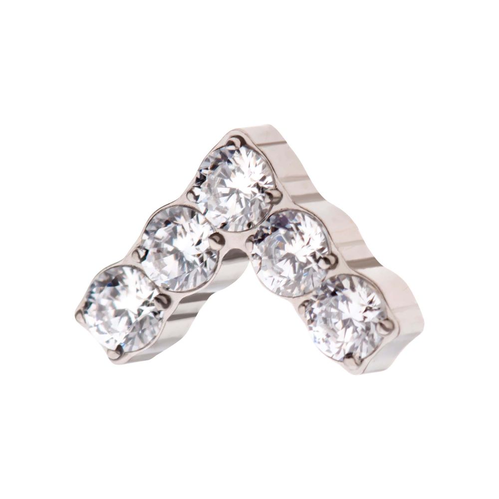 Titanium Internally Threaded with Prong Set Round Clear CZ Chevron Shape Top. Manufactured from High Polish Implant Grade Titanium (Ti-6AL-4V-ELI ASTM F136).