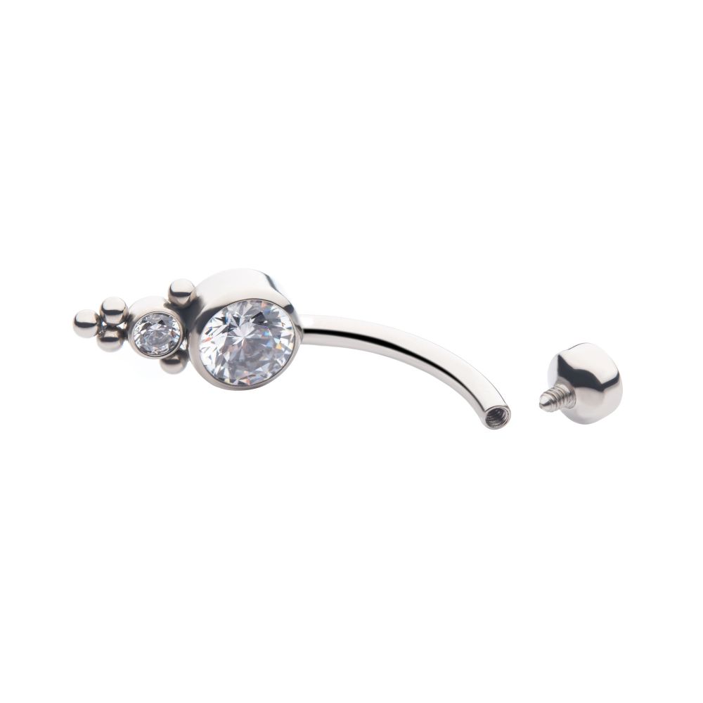 Titanium Internally Threaded with Tri Bead Bezel Set CZ Cluster Navel Curve