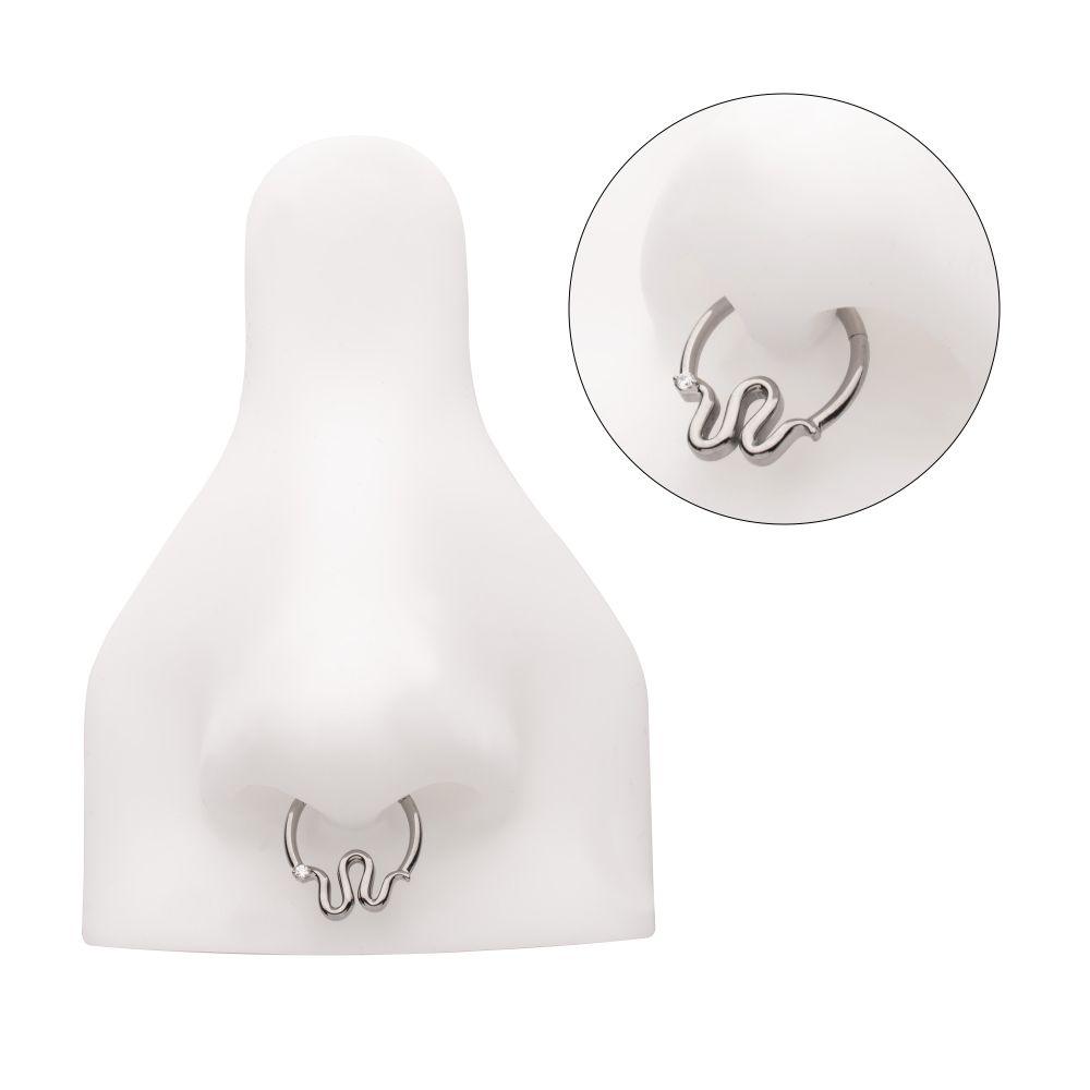 Titanium Pronged Round CZ Snake Front Facing Hinged Segment Clicker. Manufactured from High Polish Implant Grade Titanium (Ti-6AL-4V-ELI ASTM F136).