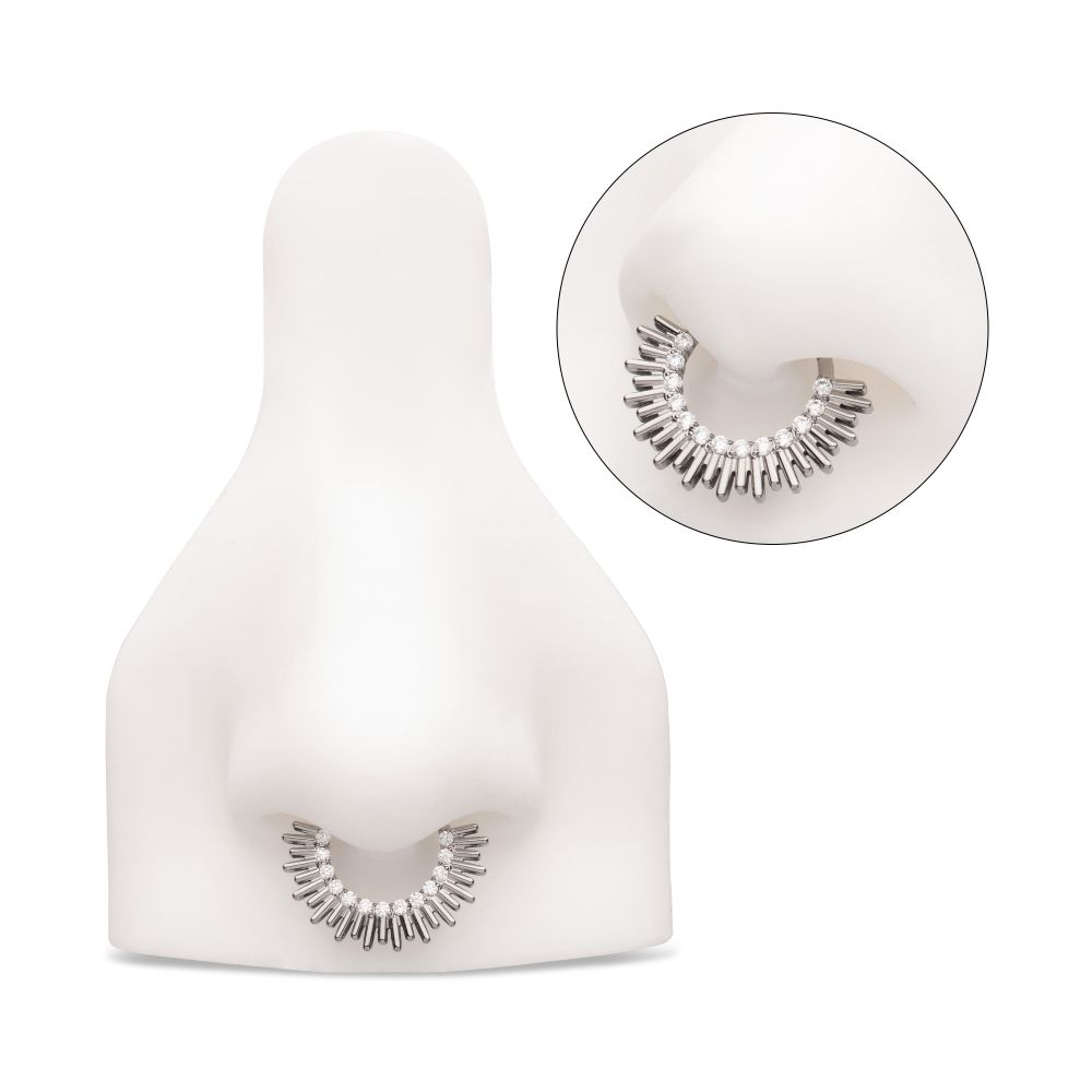Titanium Pronged Round CZ Sun Rays Cluster Front Facing Hinged Segment Clicker