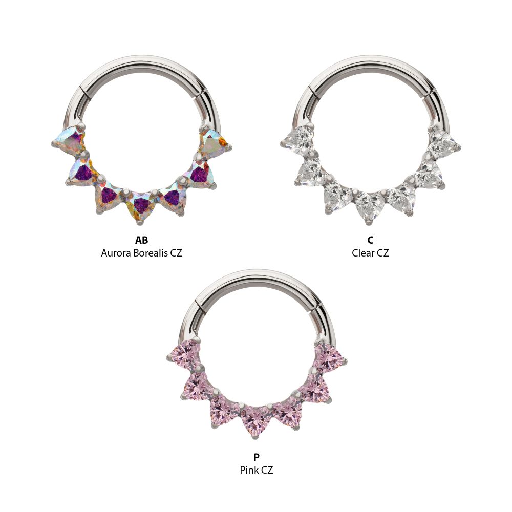 Titanium Seven Heart-Cut Gem Front Facing Hinged Segment Clicker