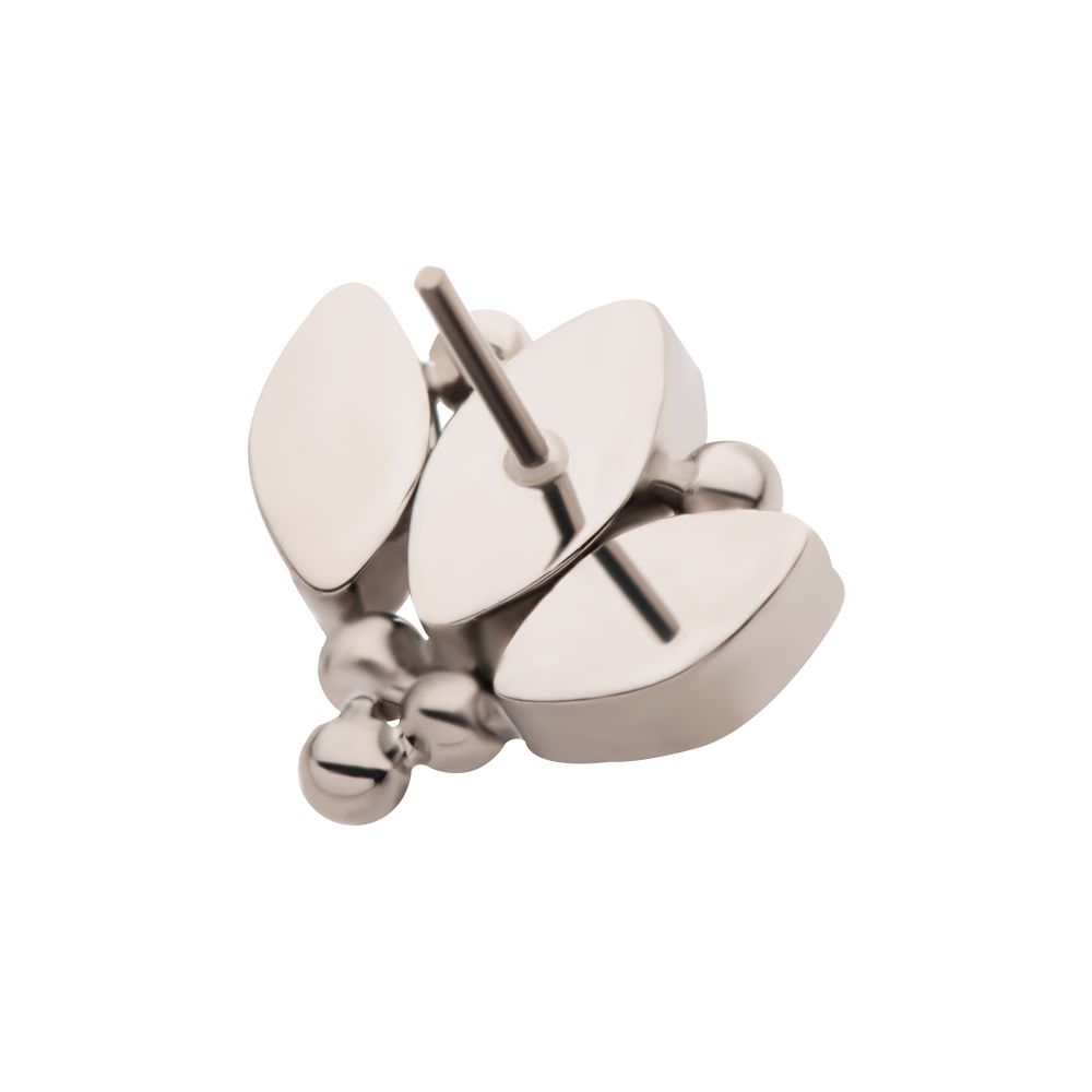Titanium Threadless Beaded Bezel Set Marquise Gem 3-Cluster Top is made from Implant Grade Titanium TI-6AL-4V ELI ASTM F136 with 25g durable Titanium Pin designed to be practical and easy to use. Fitting all sizes of pins and bases in our threadless body jewelry line. Pin Size: 0.45mm x 4.7mm.