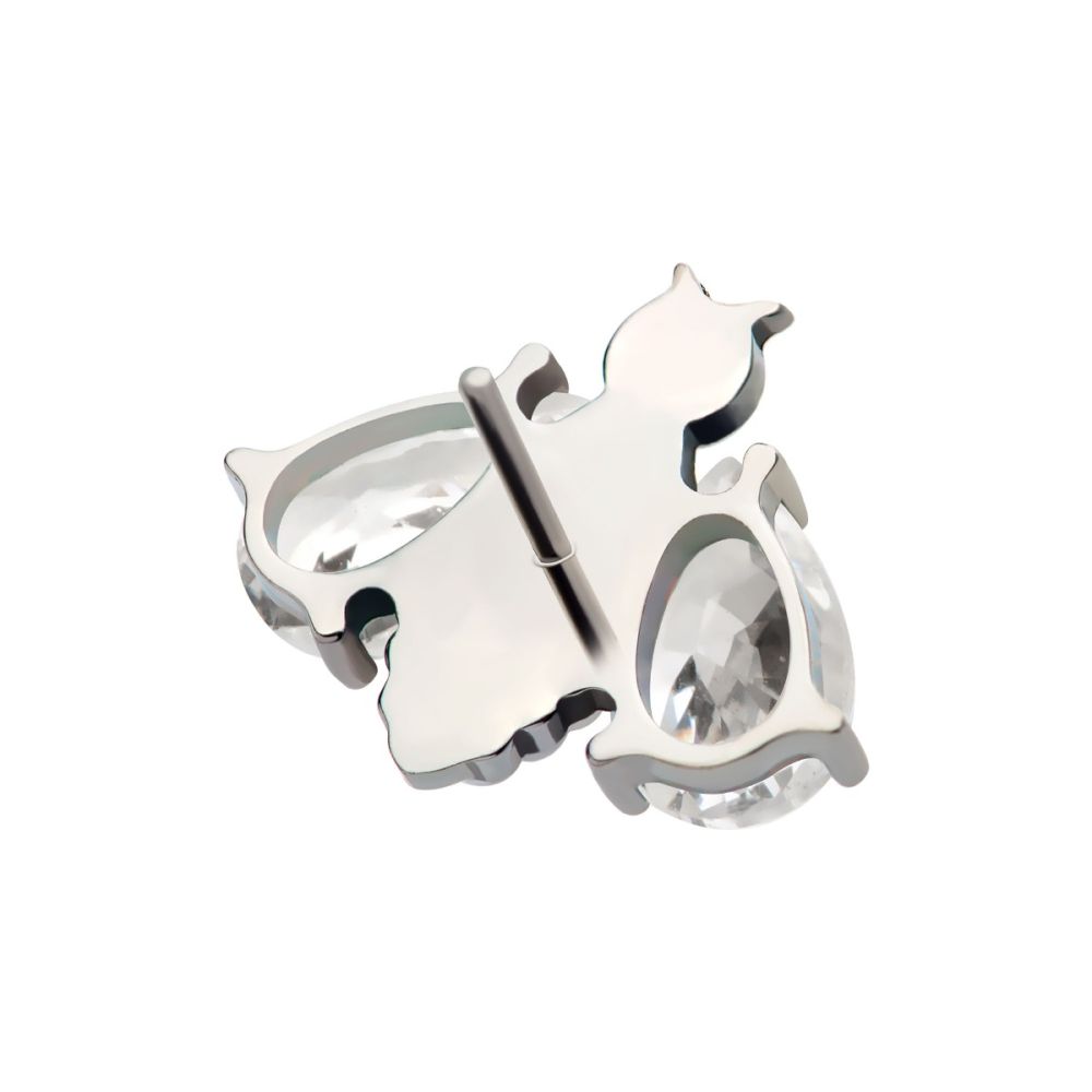 Titanium Threadless Bee with Prong Set Teardrop Shape Opal Wings Top. These Threadless Tops are made from Implant Grade Titanium TI-6AL-4V ELI ASTM F136 with 25g durable Titanium Pin designed to be practical and easy to use. Fitting all sizes of pins and bases in our threadless body jewelry line. Pin Size: 0.45mm x 4.7mm.