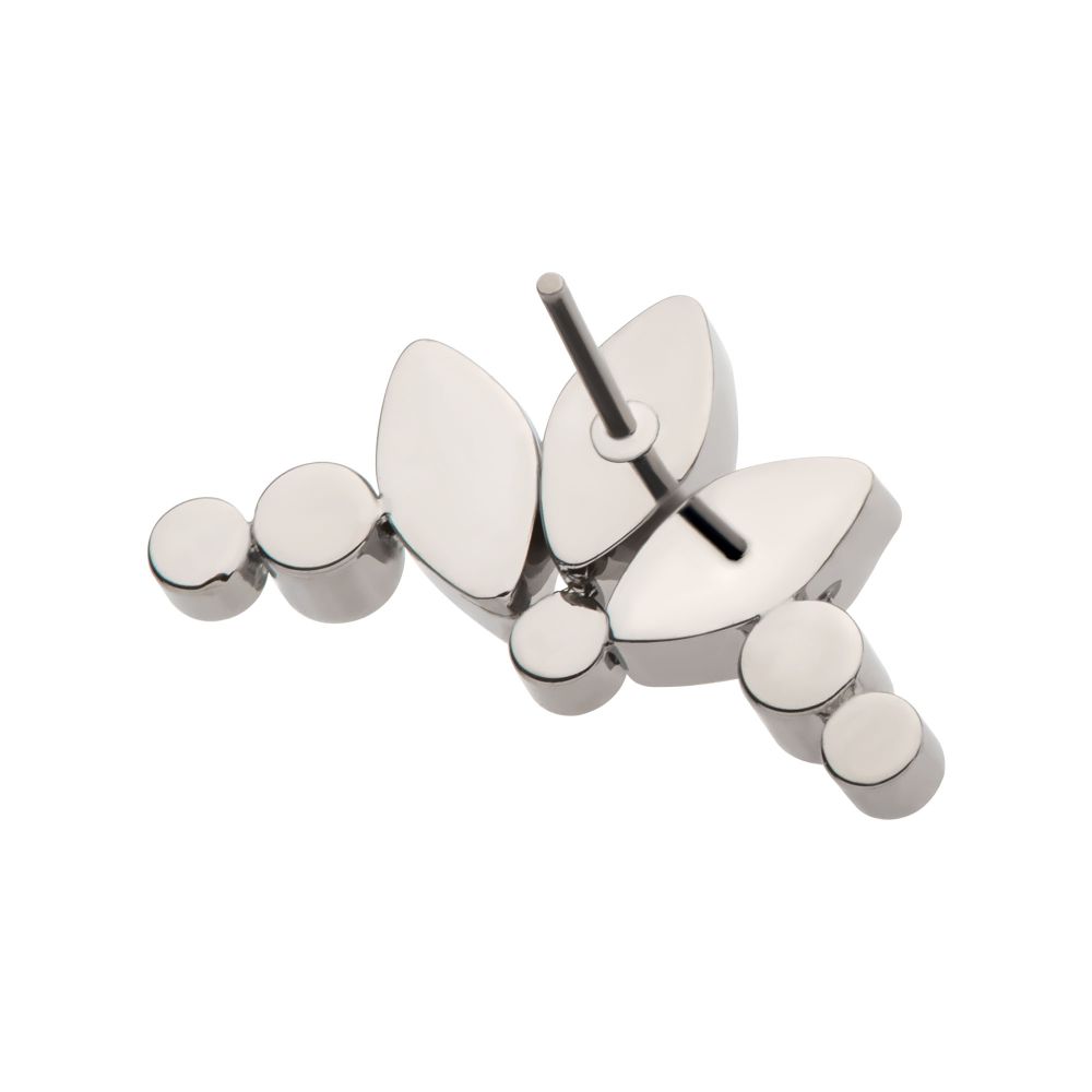 Titanium Threadless Bezel Set Marquise & Round Gem Cluster Top. This Threadless Top is made from Implant Grade Titanium TI-6AL-4V ELI ASTM F136 with 25g durable Titanium Pin designed to be practical and easy to use. Fitting all sizes of pins and bases in our threadless body jewelry line. Pin Size: 0.45mm x 4.7mm.