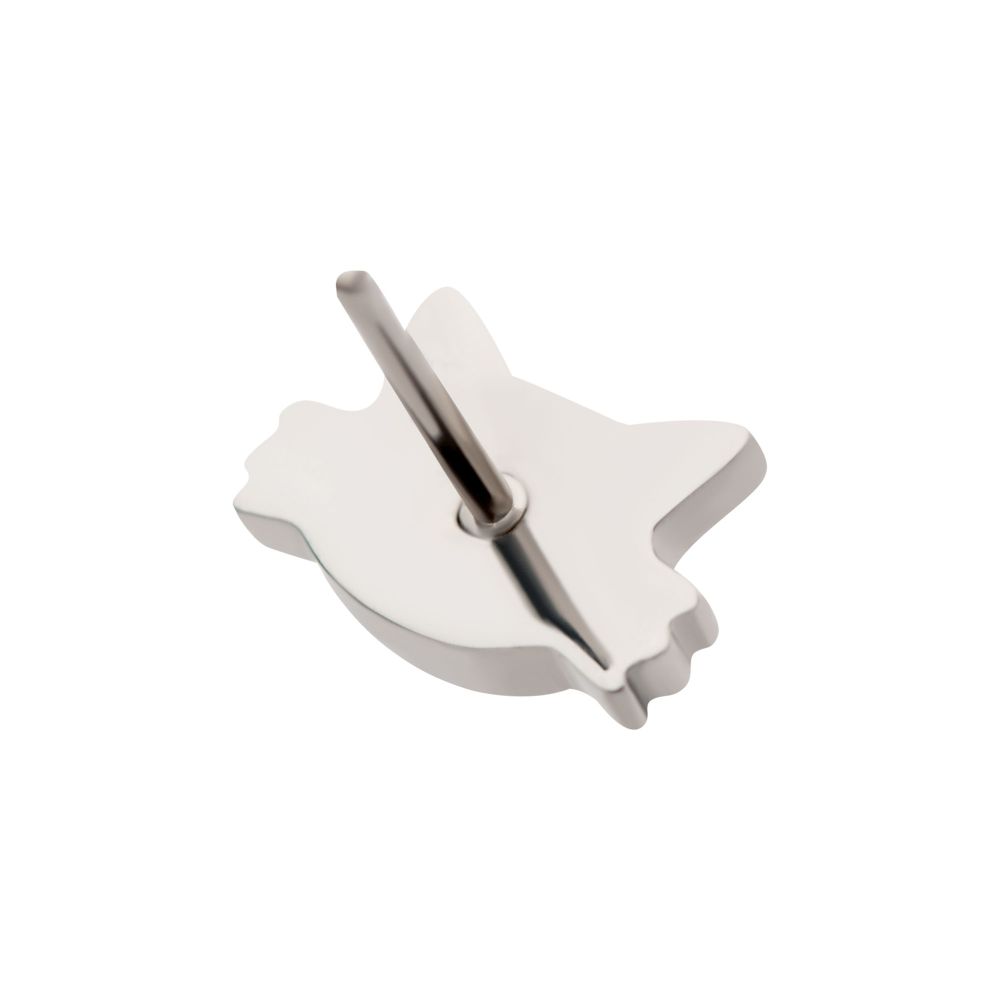 Titanium Threadless Cat's Head Top. This Threadless Top is made from Implant Grade Titanium TI-6AL-4V ELI ASTM F136 with 25g durable Titanium Pin designed to be practical and easy to use. Fitting all sizes of pins and bases in our threadless body jewelry line. Pin Size: 0.45mm x 4.7mm.