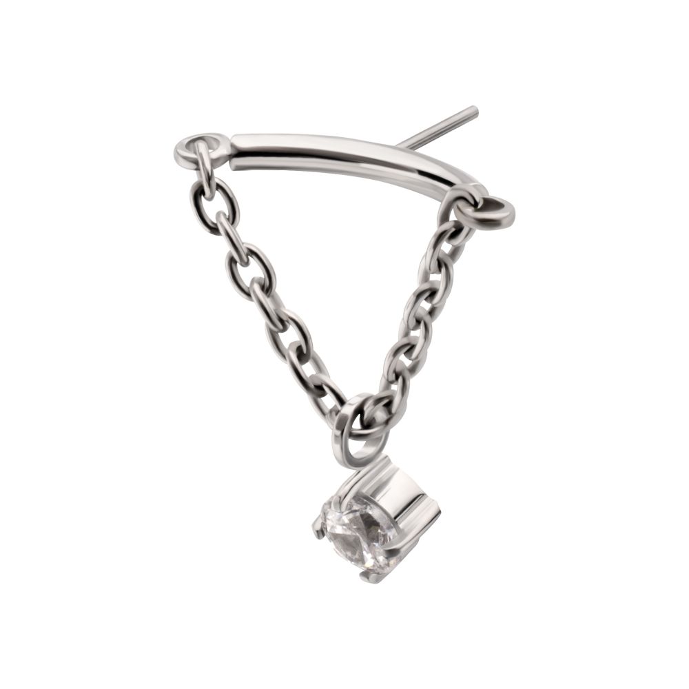 Titanium Threadless Hidden Helix Curved Bar Top with CZ Gem Chain Dangle