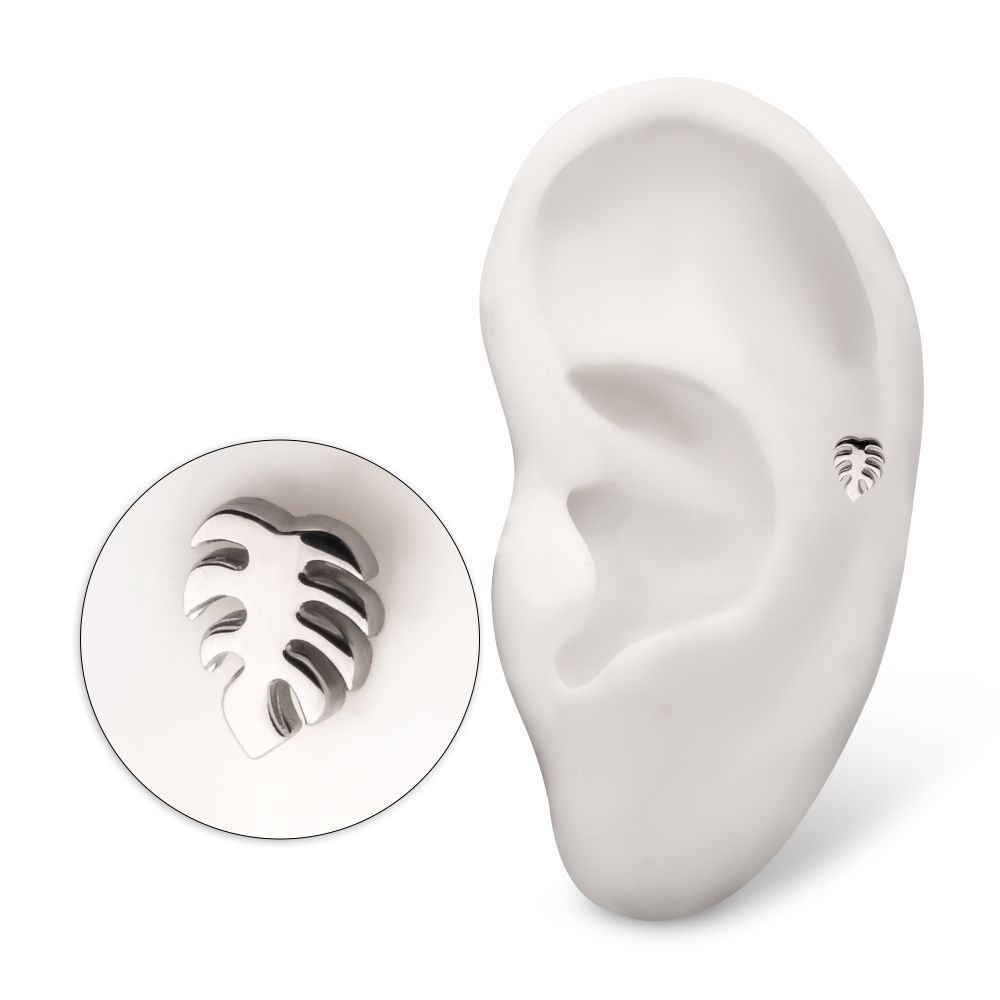 Titanium Threadless Monstera Leaf Top. Manufactured from High Polish Implant Grade Titanium (Ti-6AL-4V-ELI ASTM F136). Pin Size: 0.45mm x 4.7mm.