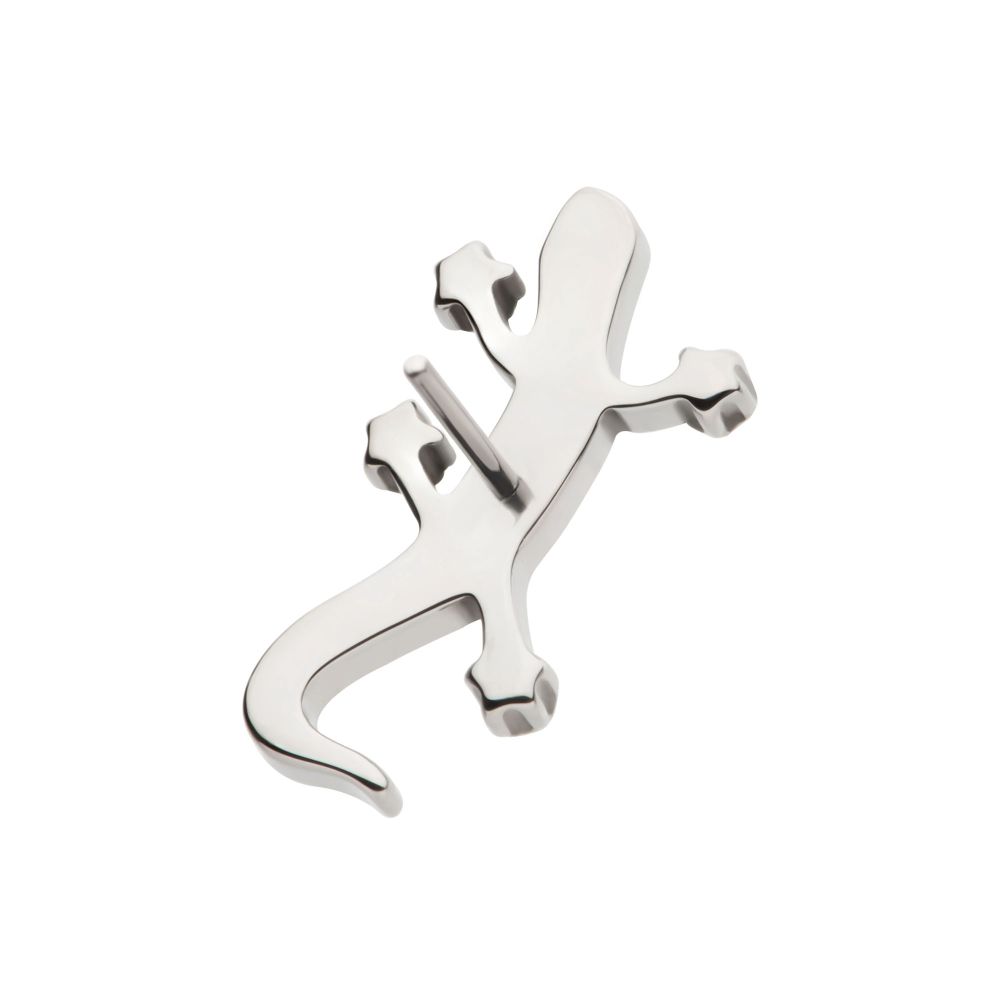 Titanium Threadless Pave Set Round CZ Gem Lizard Top. This Threadless Top is made from Implant Grade Titanium TI-6AL-4V ELI ASTM F136 with 25g durable Titanium Pin designed to be practical and easy to use. Fitting all sizes of pins and bases in our threadless body jewelry line. Pin Size: 0.45mm x 4.7mm.