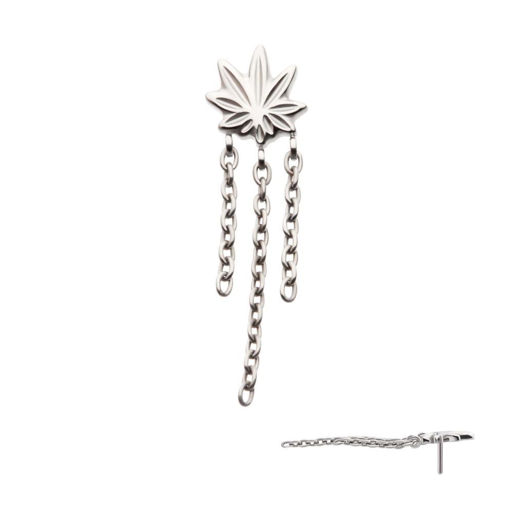 Titanium Threadless Pot Leaf Top with 3 Dangle Chains