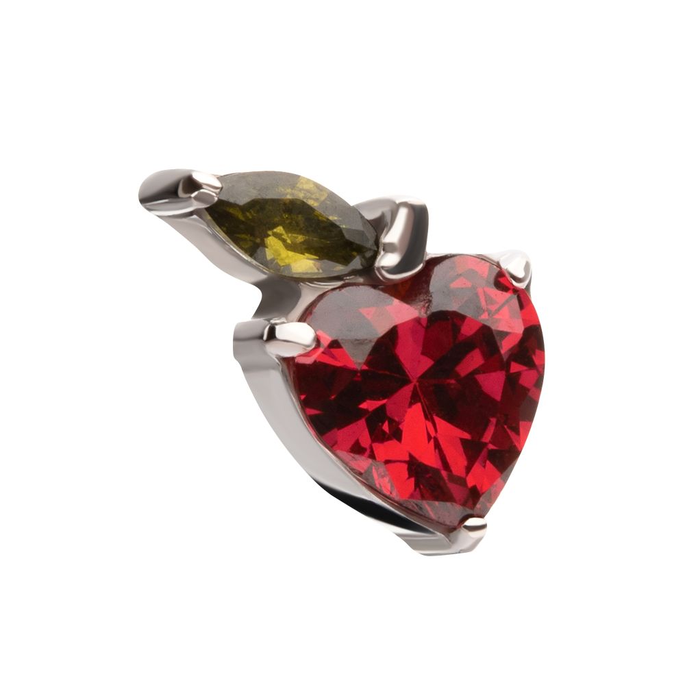 Titanium Threadless Prong Set Gem Apple Top. This Threadless Top is made from Implant Grade Titanium TI-6AL-4V ELI ASTM F136 with 25g durable Titanium Pin designed to be practical and easy to use. Fitting all sizes of pins and bases in our threadless body jewelry line. Pin Size: 0.45mm x 4.7mm.