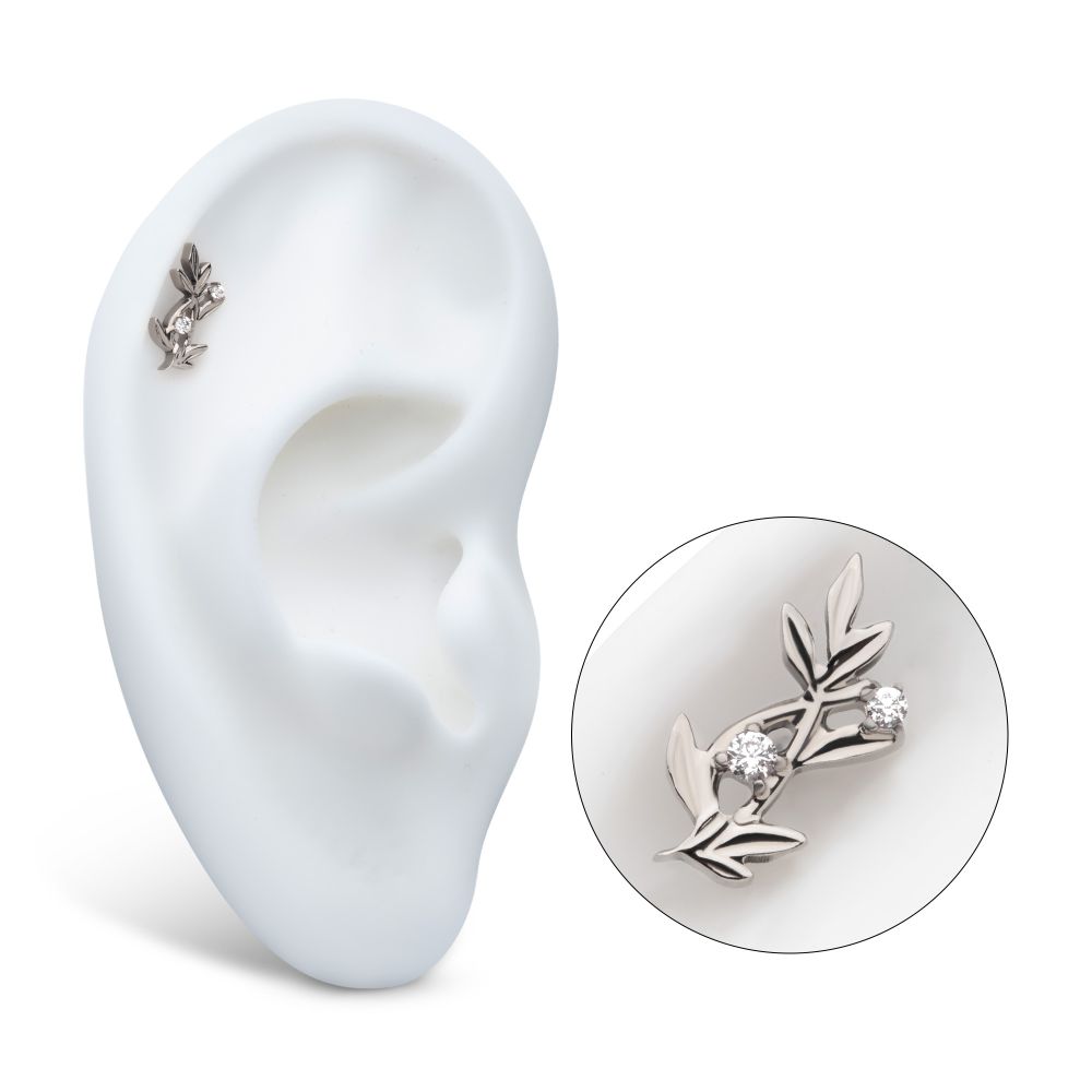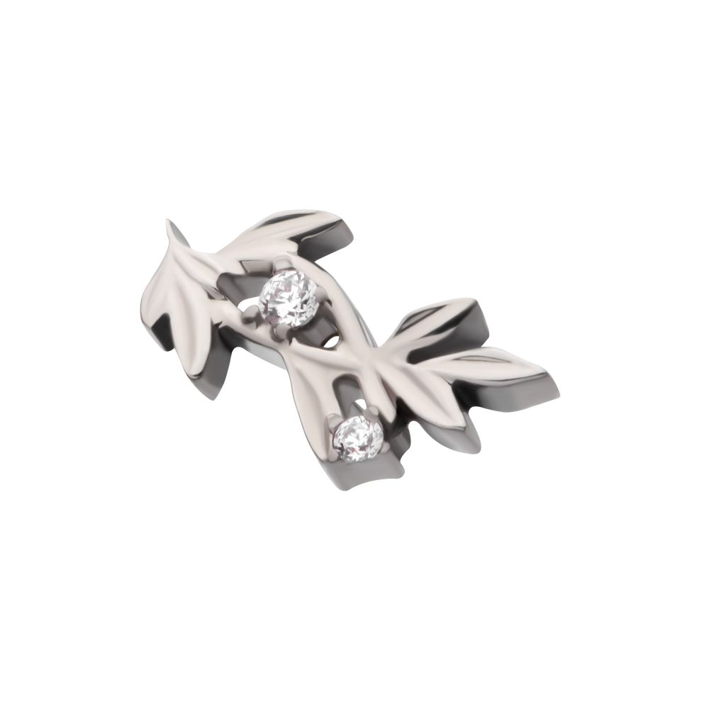 Titanium Threadless Prong Set Gem Vine Top. This Threadless Top is made from Implant Grade Titanium TI-6AL-4V ELI ASTM F136 with 25g durable Titanium Pin designed to be practical and easy to use. Fitting all sizes of pins and bases in our threadless body jewelry line. Pin Size: 0.45mm x 4.7mm.