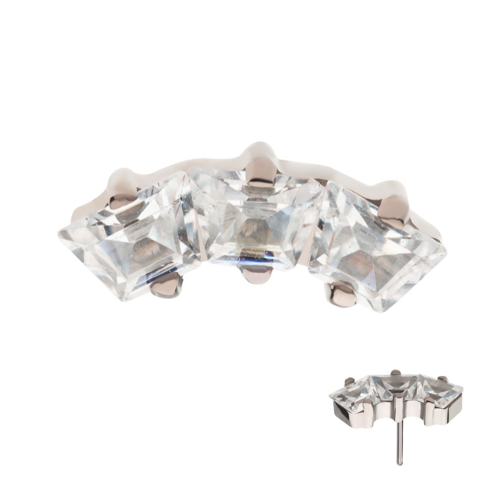 Titanium Threadless Prong Set Trapezoid CZ 3-Cluster Top