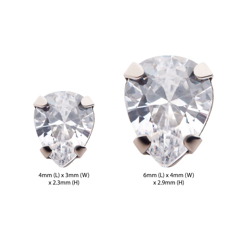 Titanium Threadless with 4-Prong Set CZ Pear-Shaped Top