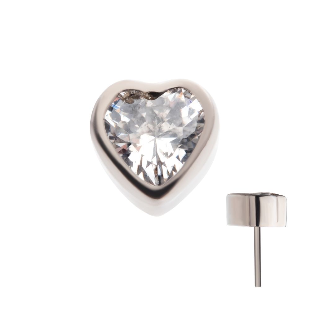 Titanium Threadless with Bezel Set CZ Heart Shape Top