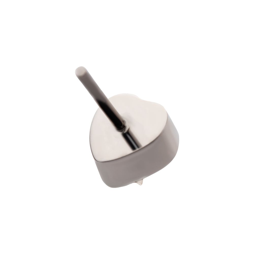 Titanium Threadless with Bezel Set CZ Heart Shape Top. Manufactured from High Polish Implant Grade Titanium (Ti-6AL-4V-ELI ASTM F136). To secure the inside bar or base, add a slight bend to the pin by simply inserting the pin halfway and pushing the top to one side. Gem size: 3*3mm. Pin Size: 0.45mm x 4.7mm.