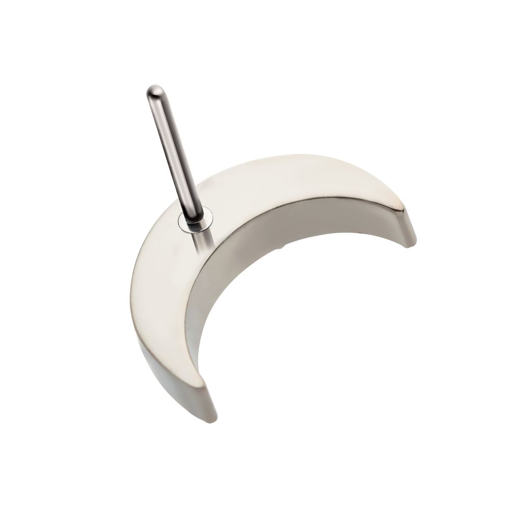 Titanium Threadless with Pave Set CZ Crescent Moon Top. This Threadless Top is made from Implant Grade Titanium TI-6AL-4V ELI ASTM F136 with 25g durable Titanium Pin designed to be practical and easy to use. Fitting all sizes of pins and bases in our threadless body jewelry line. Pin Size: 0.45mm x 4.7mm.