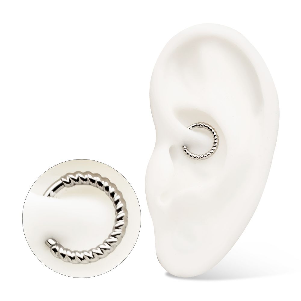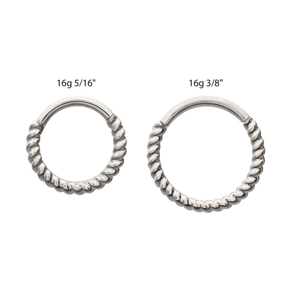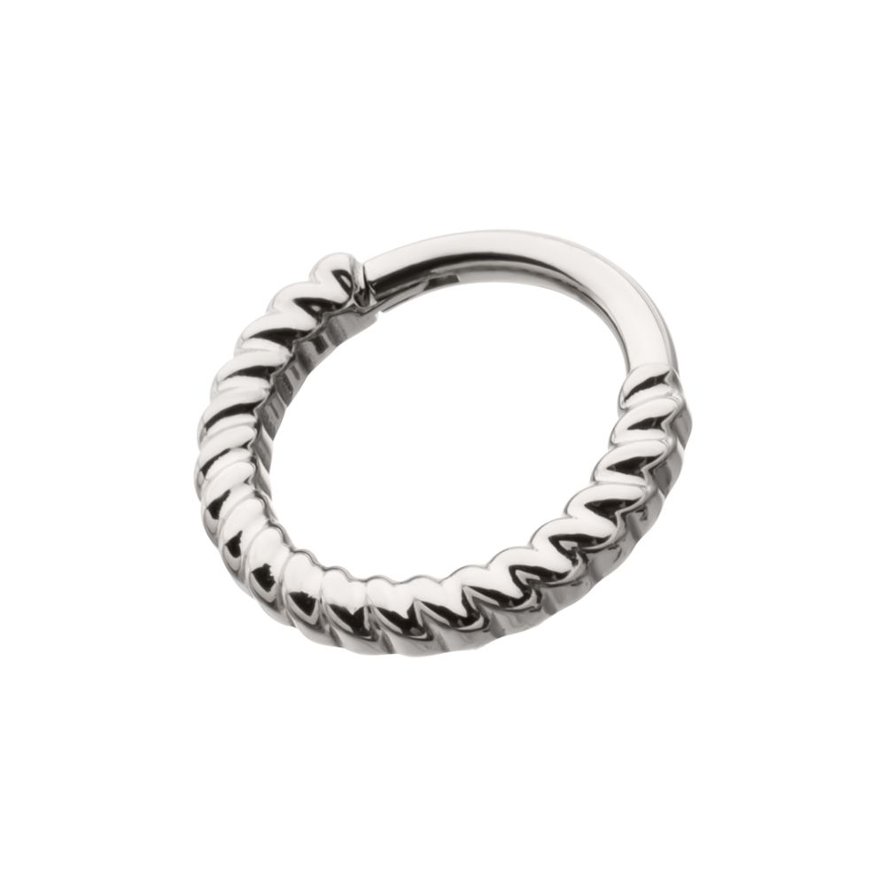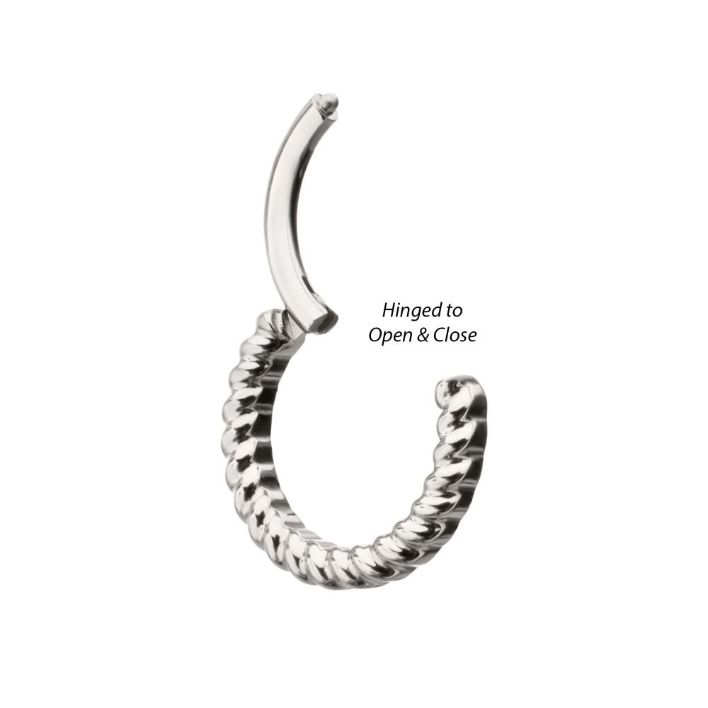 Titanium Twisted Rope Front Facing Hinged Segment Clicker. Manufactured from High Polish Implant Grade Titanium (Ti-6AL-4V-ELI ASTM F136).